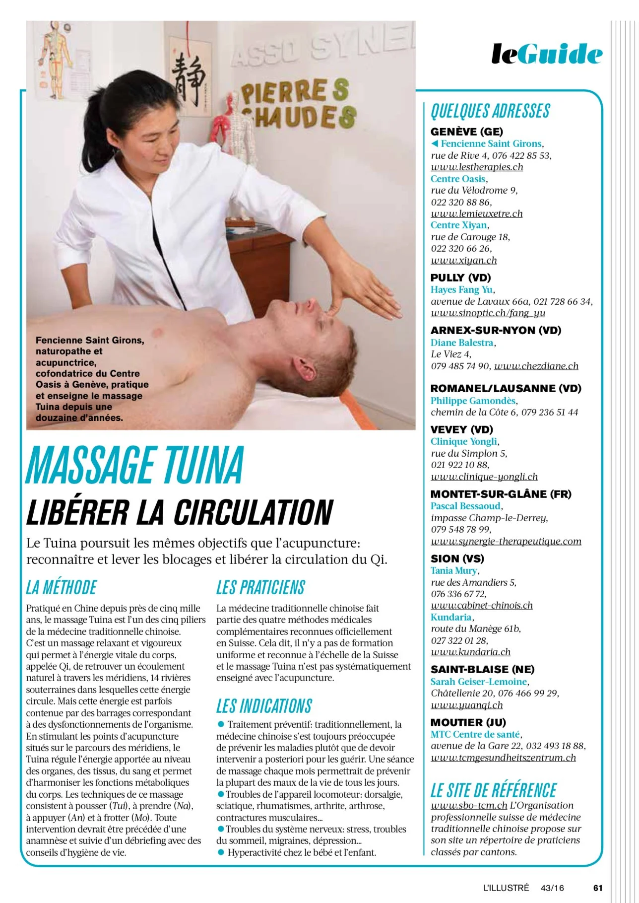 Le Massage Tuina Presse 18 janv. Écrit par Fencienne Saint Girons-Tu Article paru dans le magazine l’Illustré Fencienne Saint Girons-Tu